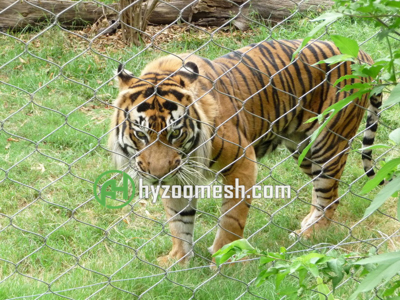 Small cats (such as leopards): 50mm x 50mm to 76mm x 76mm wire rope mesh.